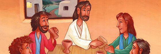 Dann nahm er ein Brot. Er dankte Gott dafür, brach es in Stücke und gab es ihnen mit den Worten: »Das ist mein Leib, der für euch hingegeben wird. Feiert dieses Mahl immer wieder und denkt daran, was ich für euch getan habe, sooft ihr dieses Brot esst!« Quelle: Lk 17,19
