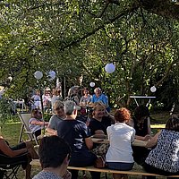 Pfarrei St. Peter und Paul Bad Camberg Sundowner im Pfarrgarten Haintchen Sabrina Blazquez 24.07.2025 Sundowner im Pfarrgarten Rückblick Unter dem Motto „Sundowner im Pfarrgarten“ lud die Bücherei San