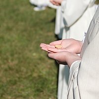 Pfarrei St. Peter und Paul Bad Camberg Glaubensleben Sakramente Ehe Bistum Mainz in: Pfarrbriefservice.de Der Ring, den sich die Eheleute anstecken, symbolisiert die Liebe und Treue der beiden zueinan
