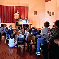 Pfarrei St. Peter und Paul Bad Camberg Kamishibai Vorstellung im Pfarrheim KÖB Sabrina Blazquez Haintchen, 27.10.2025 Kamishibai Vorstellung im Pfarrheim Spannung, Spaß und leuchtende Kinderaugen: Bei