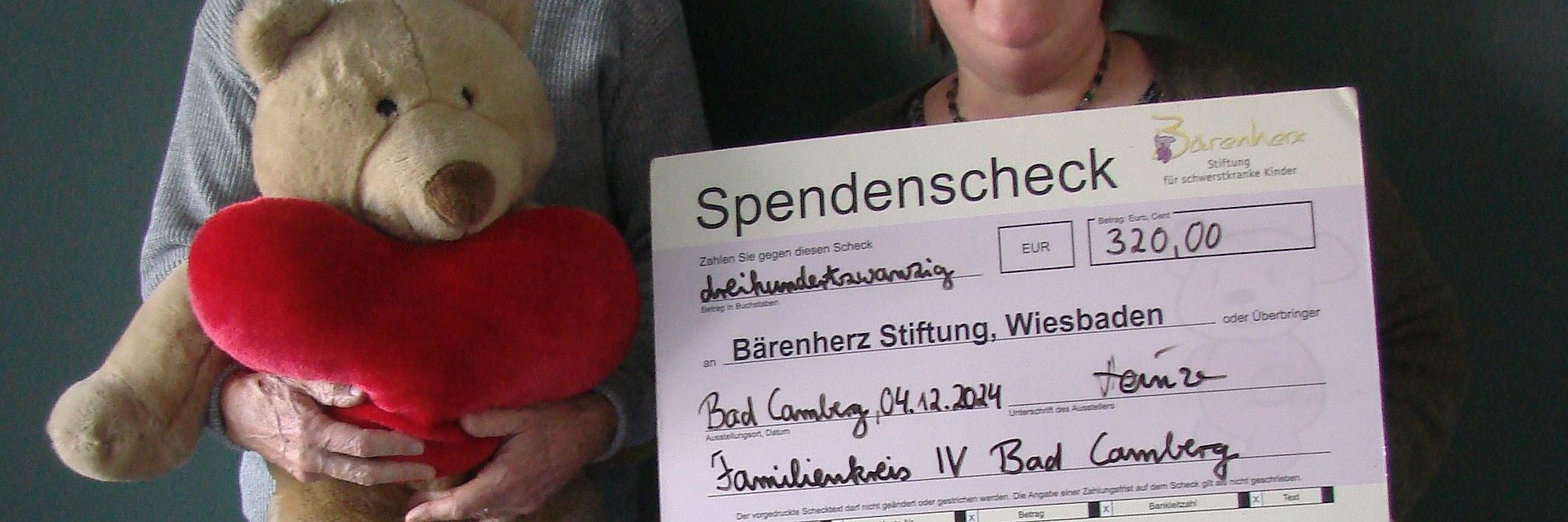 Der Familienkreis IV der kath. Pfarrgemeinde spendet den Erlös des diesjährigen Glühwein- und Kinderpunschverkaufs in Höhe von 320,- € an den Ambulanten Kinder- und Jugendhospizdienst Bärenherz in Limburg.