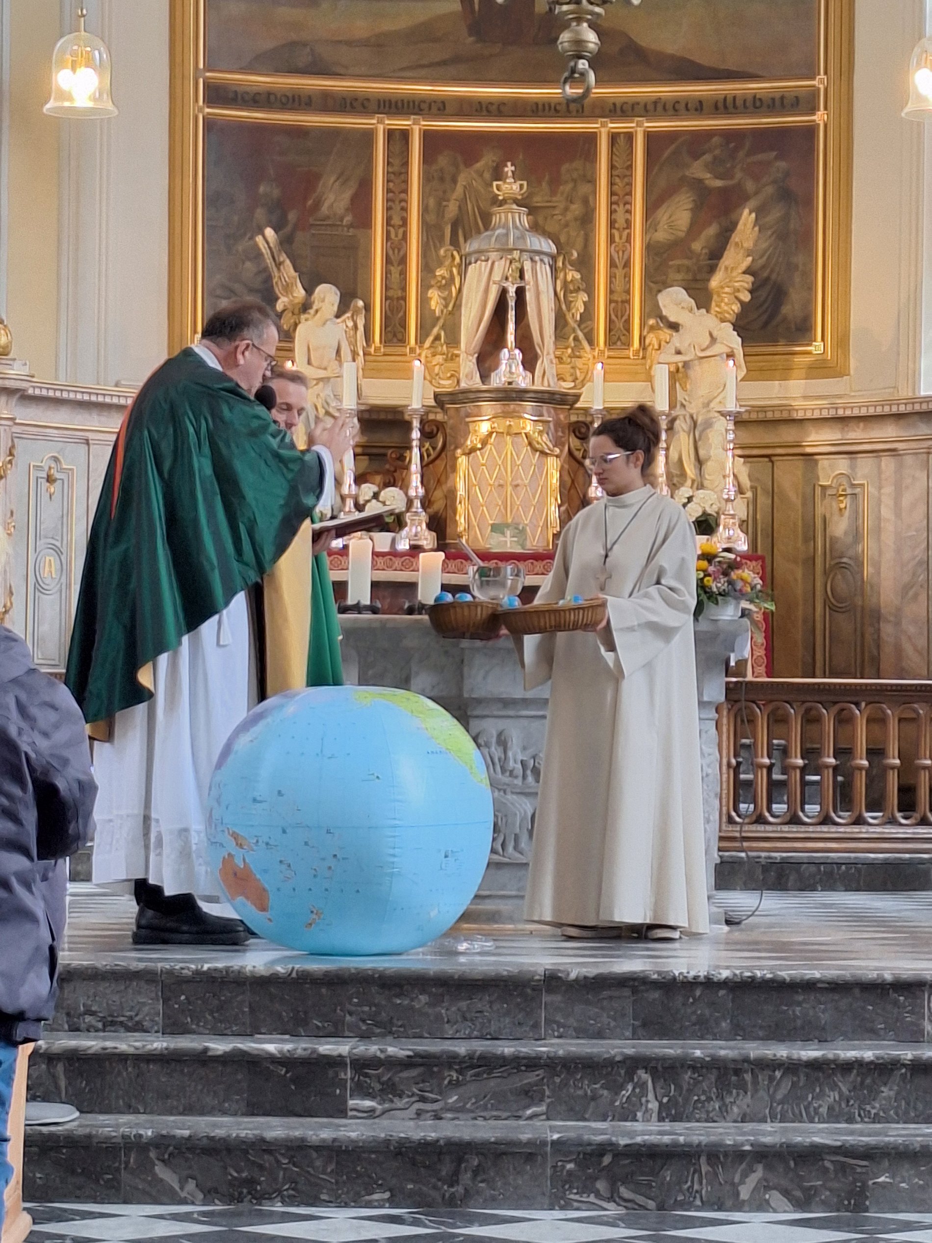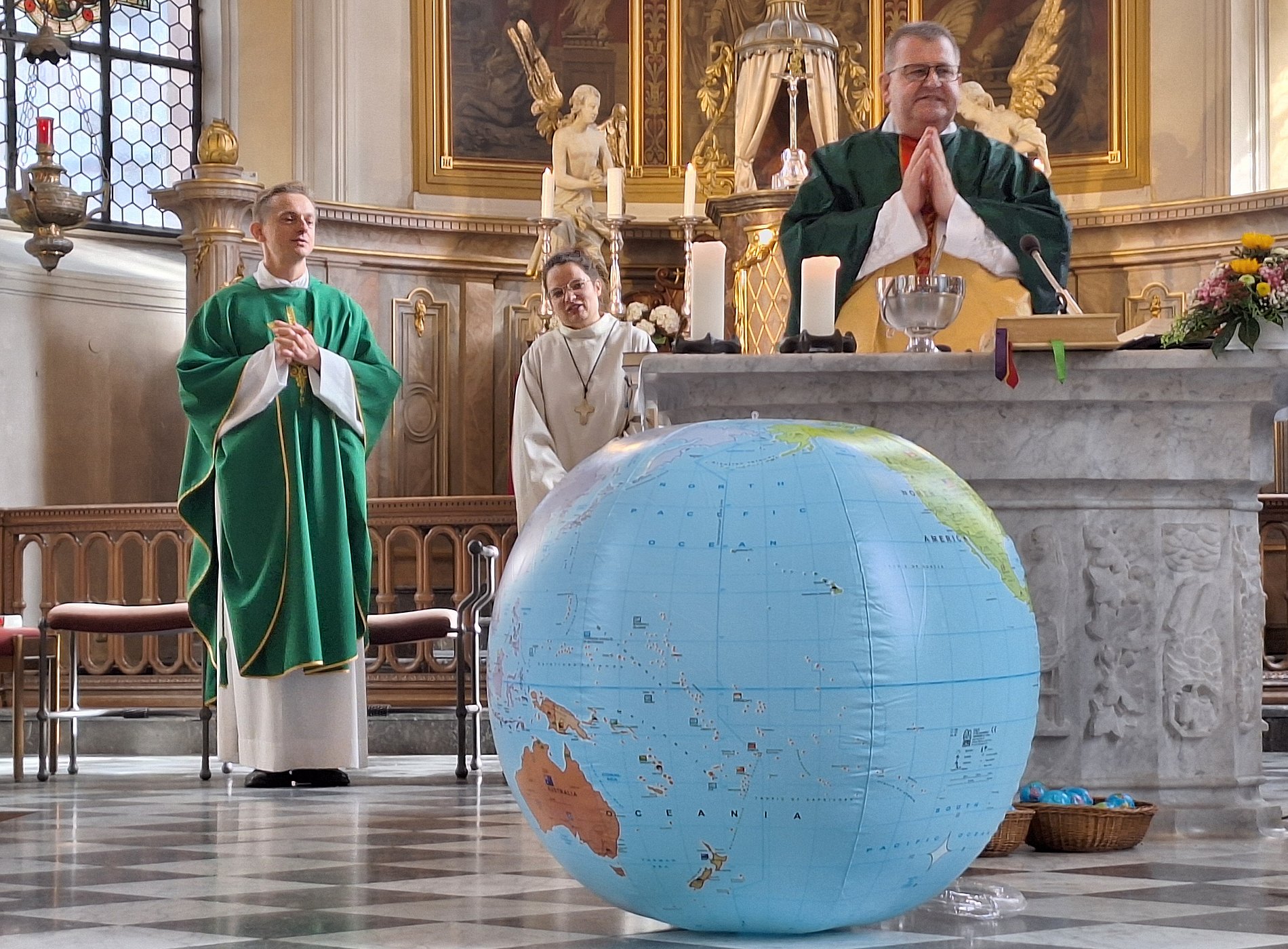 Zum Abschluss wurden an alle Kinder kleine Weltkugel-Bälle verteilt – ein farbenfrohes Symbol für den Weltmissionssonntag und die Verbundenheit der Christen weltweit.