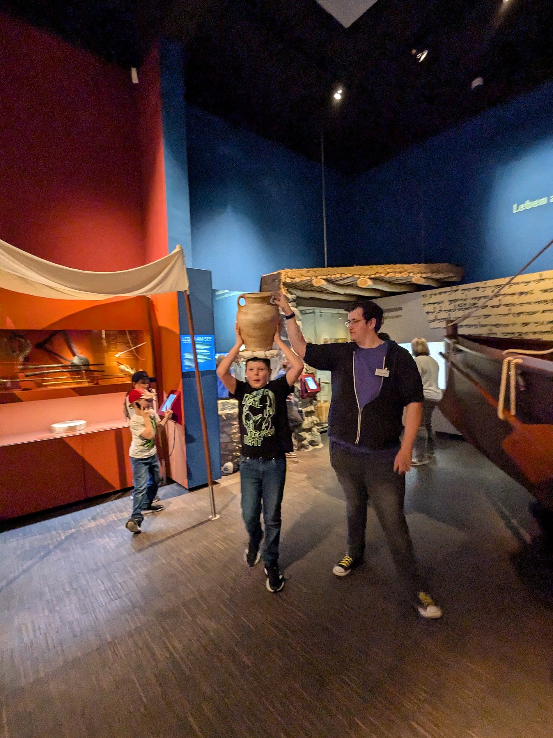 im Bibelhaus in Frankfurt. Das Bibelhaus versteht sich als „MitmachMuseum“ und bietet andere Sichtweisen. Die Kinder saßen in einem Nachbau eines im Uferbereich des See Genezareth gefundenen und etwa 2.000 Jahre alten Bootes und erlebten mit allen Sinnen, wie sich wohl die Fischer während des Sturms auf dem See Genezareth gefühlt haben müssen. Jesus fragte seine Jünger, nachdem er die Elemente beruhigt hatte, ob die Jünger denn kein Vertrauen und keinen Glauben hätten …. Wir überlegten in der Gruppe: Wie haben wir uns bei dem Experiment gefühlt? Wäre unser Vertrauen und unser Glaube ausreichend?
