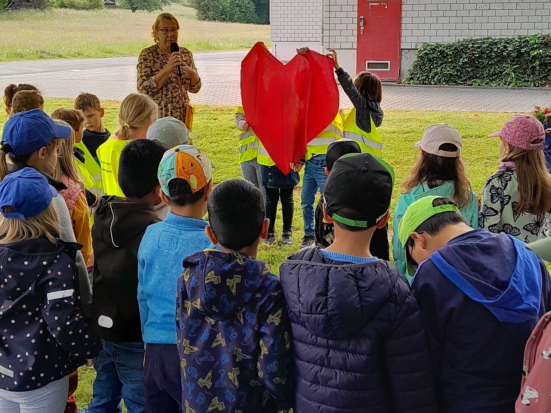 Ausgehend von der biblischen Geschichte, in der der zwölfjährige Jesus im Anschluss an das große Pessachfest auf einmal von seinen Eltern vermisst wurde, weil er nicht mit ihnen nach Hause ging, sondern lieber im Tempel blieb, erfuhren die Kinder, dass Maria eine sich sorgende Mutter ist, die sich auch heute noch um uns als ihre Kinder täglich sorgt. Diese Sorge und das große Herz Mariens veranschaulichten die Kinder mit einem großen Stoffherz, das sie dann vor den Altar ausbreiteten und mit Blumen schmückten.