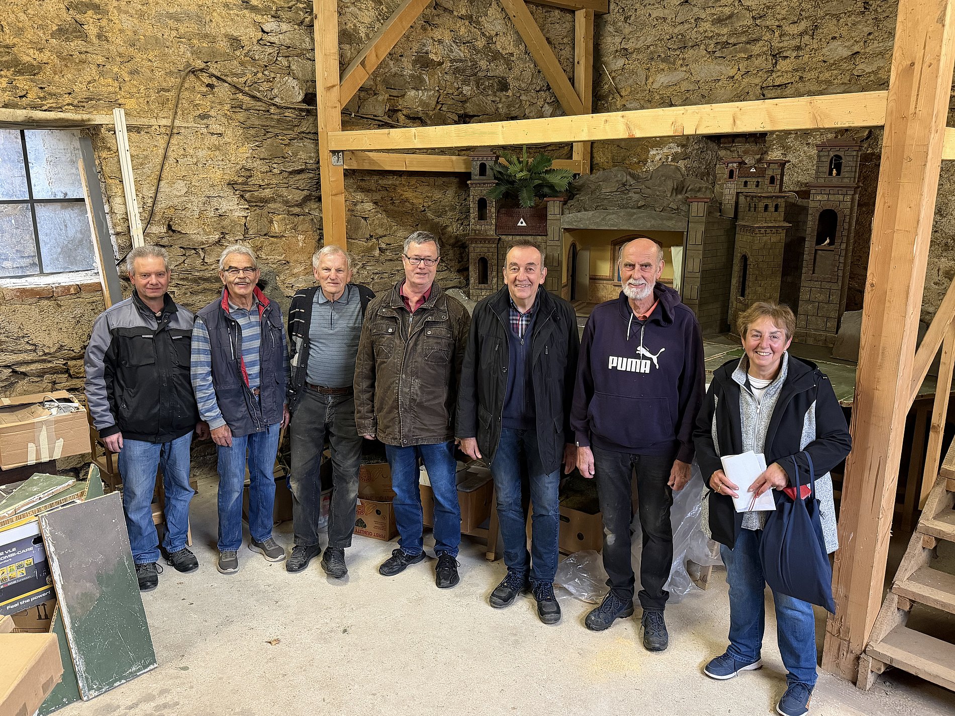 Seit sich 1990 die Krippeninitiative gegründet hat, also vor 35 Jahren!, wurde die Darstellung um weitere Szenen ergänzt und zuletzt mit fünf wechselnden Aufbauten präsentiert. Respekt und Dank an die Männer der ersten Stunde: Restaurator Peter Müller, Alfred Wenz, Robert Hollingshausen+, Bernd Meub, Gerhard Stickel, Willibald Hofmann sowie Eberhard Schuhen, Herbert Heintz, Jürgen Götz und neu dabei Dietmar Jung sowie an alle treuen Helfer und Spender! Und ein ganz großes herzliches Dankeschön an Christian Sell und seine Familie für die neue Herberge!