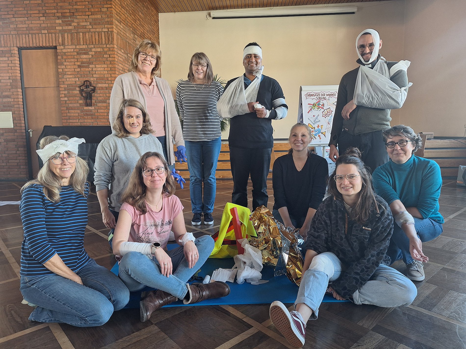 Die Kirche sorgt sich um das Seelenheil der Menschen – aber auch der Körper darf nicht zu kurz kommen. Damit im Notfall richtig geholfen werden kann, haben das Verwaltungs- und das Pastoralteam der Pfarrei St. Peter und Paul Bad Camberg am 30. Oktober einen Erste-Hilfe-Auffrischungskurs absolviert.
